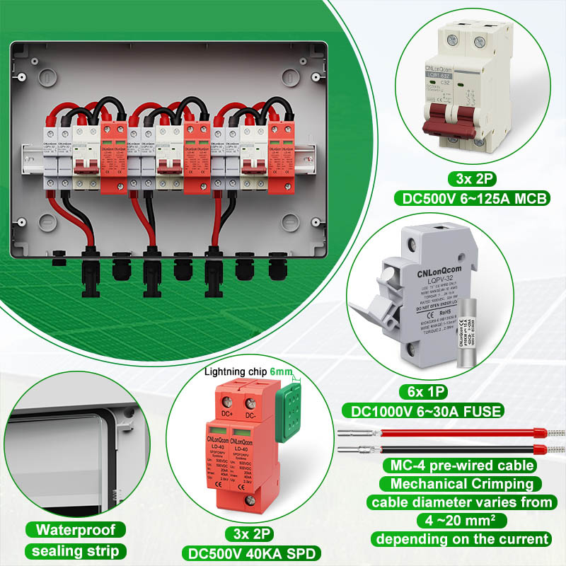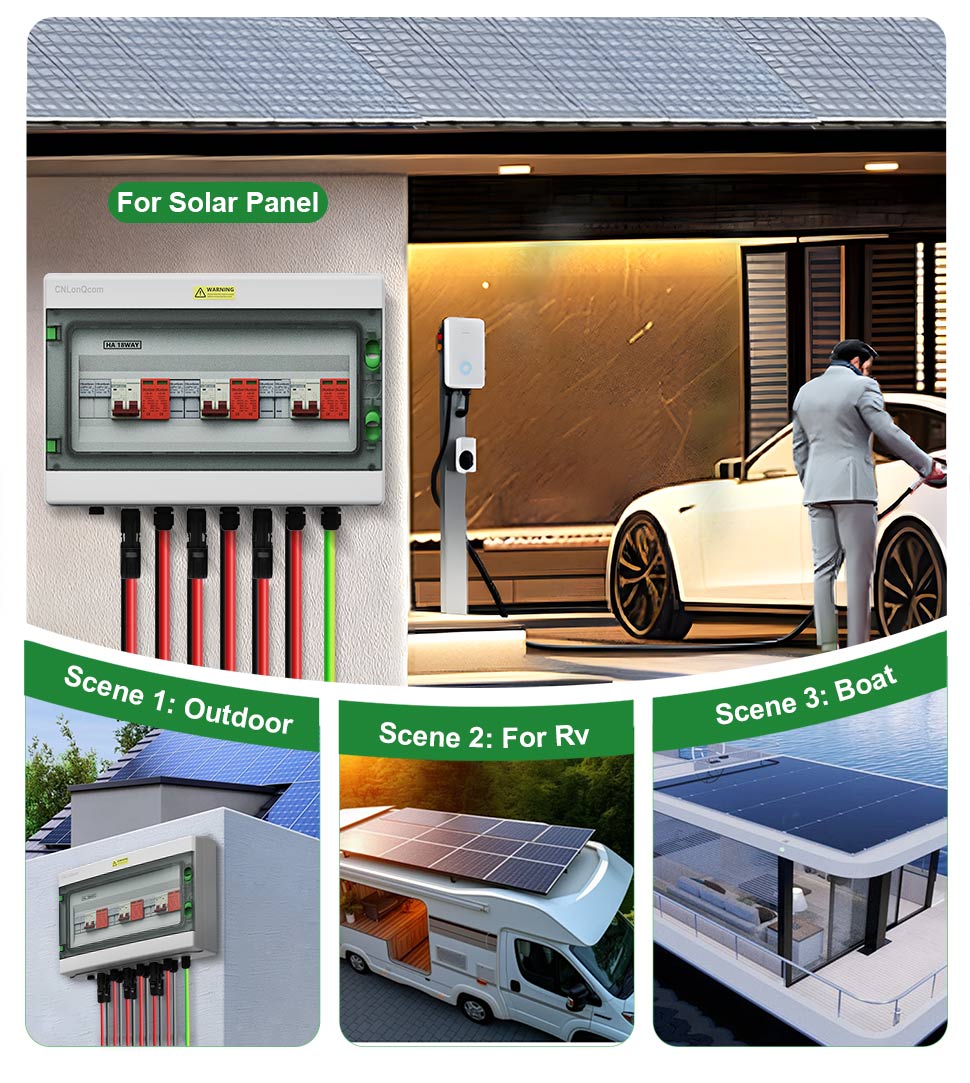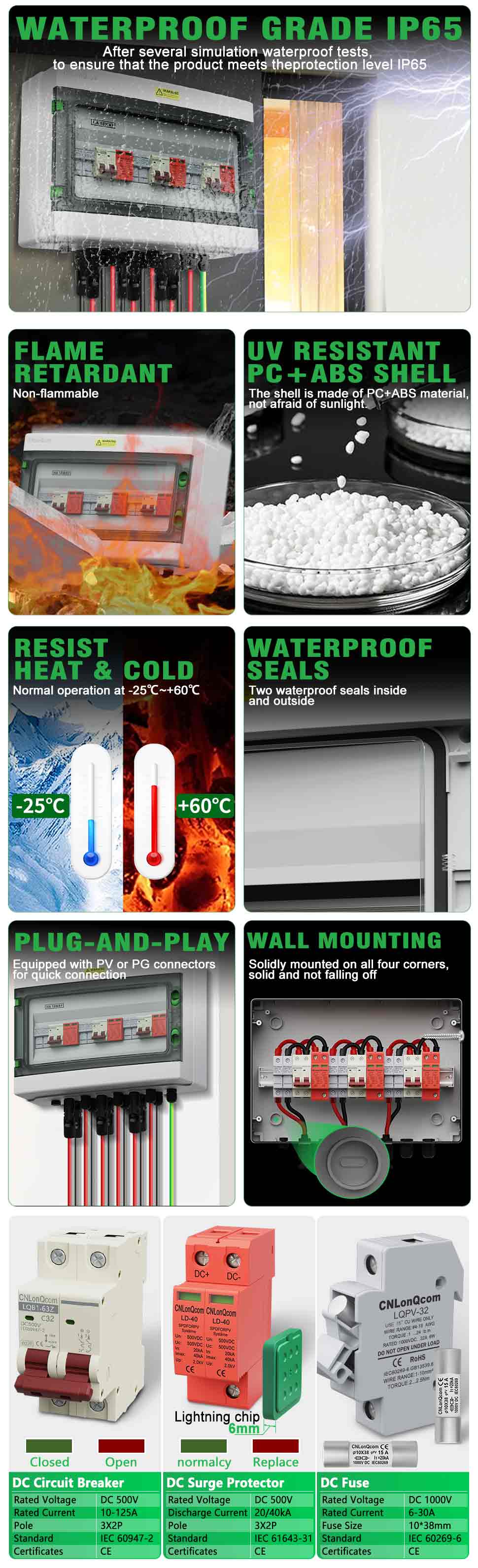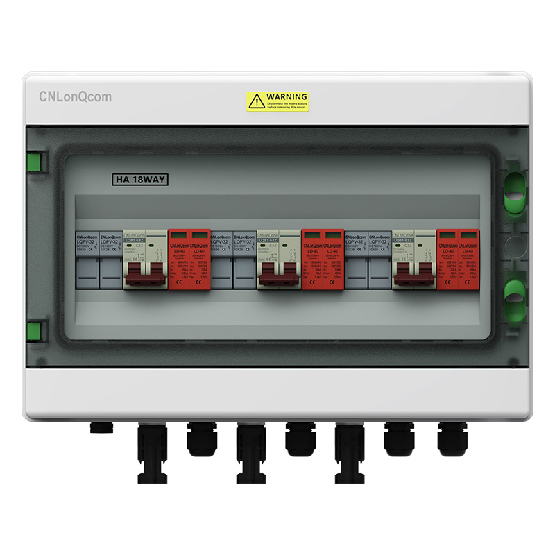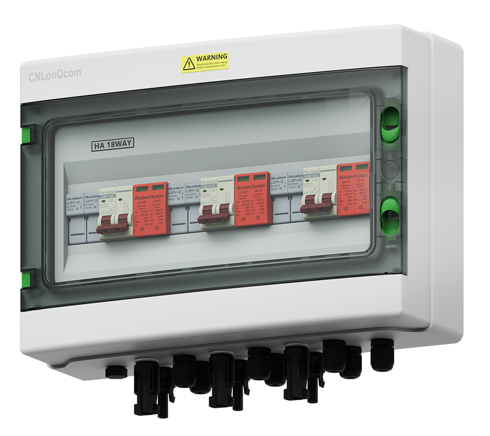 CNLONQCOMs HA-Serie Plastic PV Combiner Box 3 in 3 Out DC500V/600V/800 V werden hauptsächlich zum Schutz von PV-Systemen verwendet und häufig in nicht-netzgebundenen oder gitterverbundenen Systemen verwendet. Wie PV -Panels, Wohnmobil, Boot, PV im Freien, Haushalt usw.