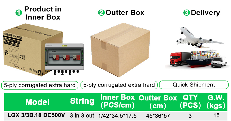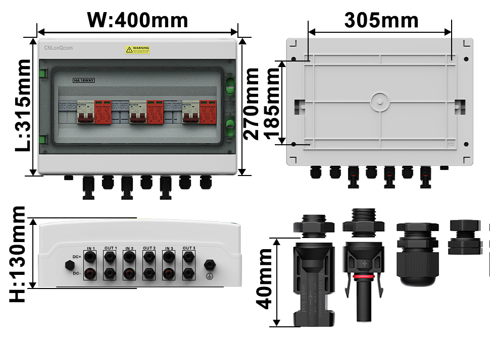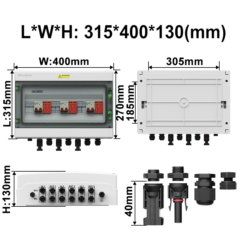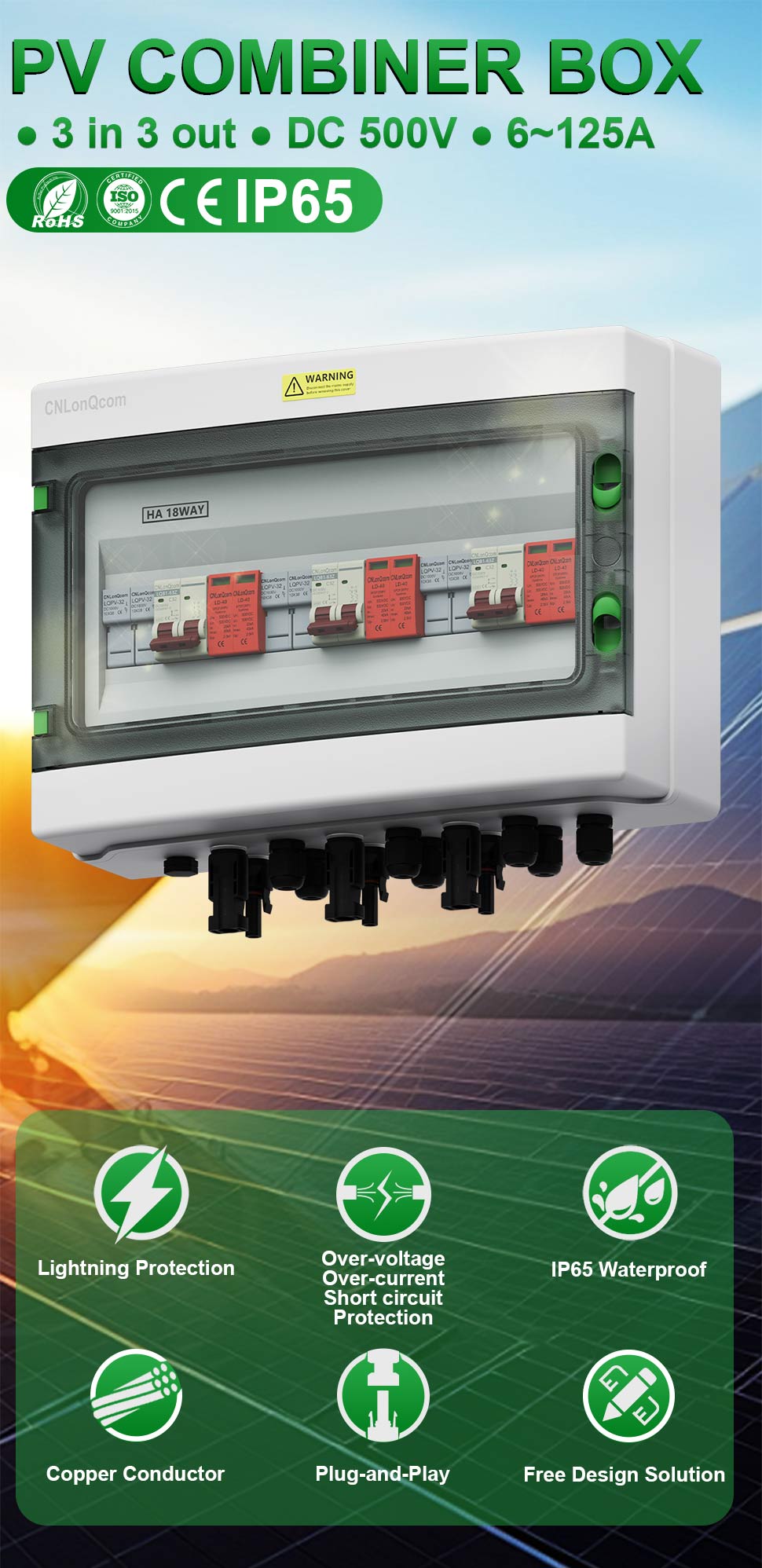 CNLONQCOMs HA -Serie Plastic PV Combiner Box 3 in 3 Out DC500V verfügt über einen PC+ABS -wasserdicht mit versiegelten Konstruktion, Überlastschutz, Kurzschlussschutz, Überspannungsschutz, Staub, Feuchtigkeit und Blitzschutz.