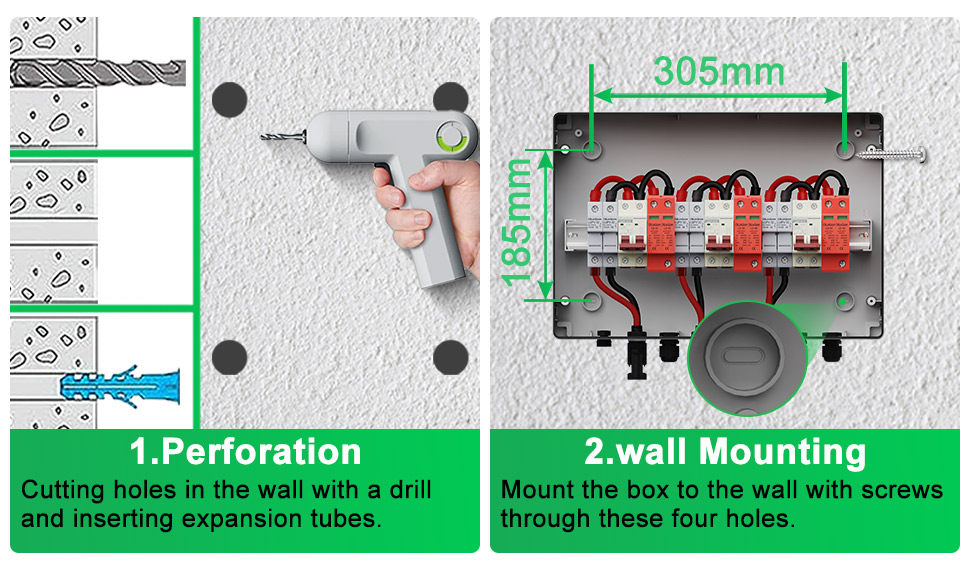 Montieren Sie die Schachtel mit Schrauben an die Wand durch diese vier Löcher.