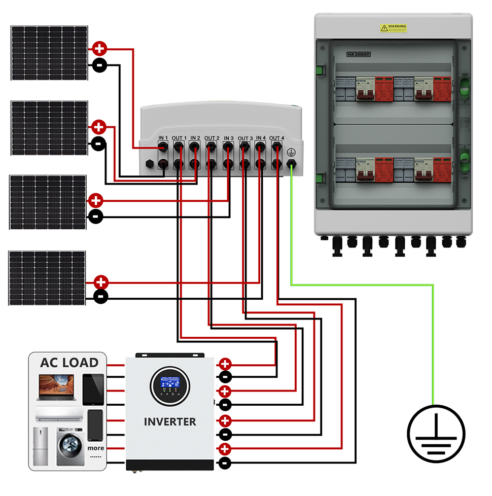 CNLONQCOMs HA -Serie Plastic PV Combiner Box 4 in 4 Out DC500V verfügt über einen PC+ABS -wasserdicht mit versiegeltem Konstruktion, Überlastschutz, Kurzschlussschutz, Überspannungsschutz, Staub, Feuchtigkeit und Blitzschutz.
